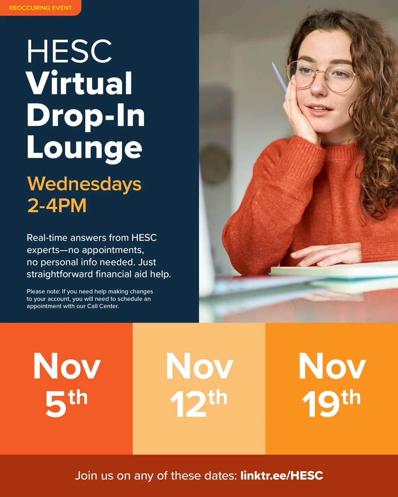 Real-time answers from HESC experts—no appointments, no personal info needed. Just straightforward financial aid help.